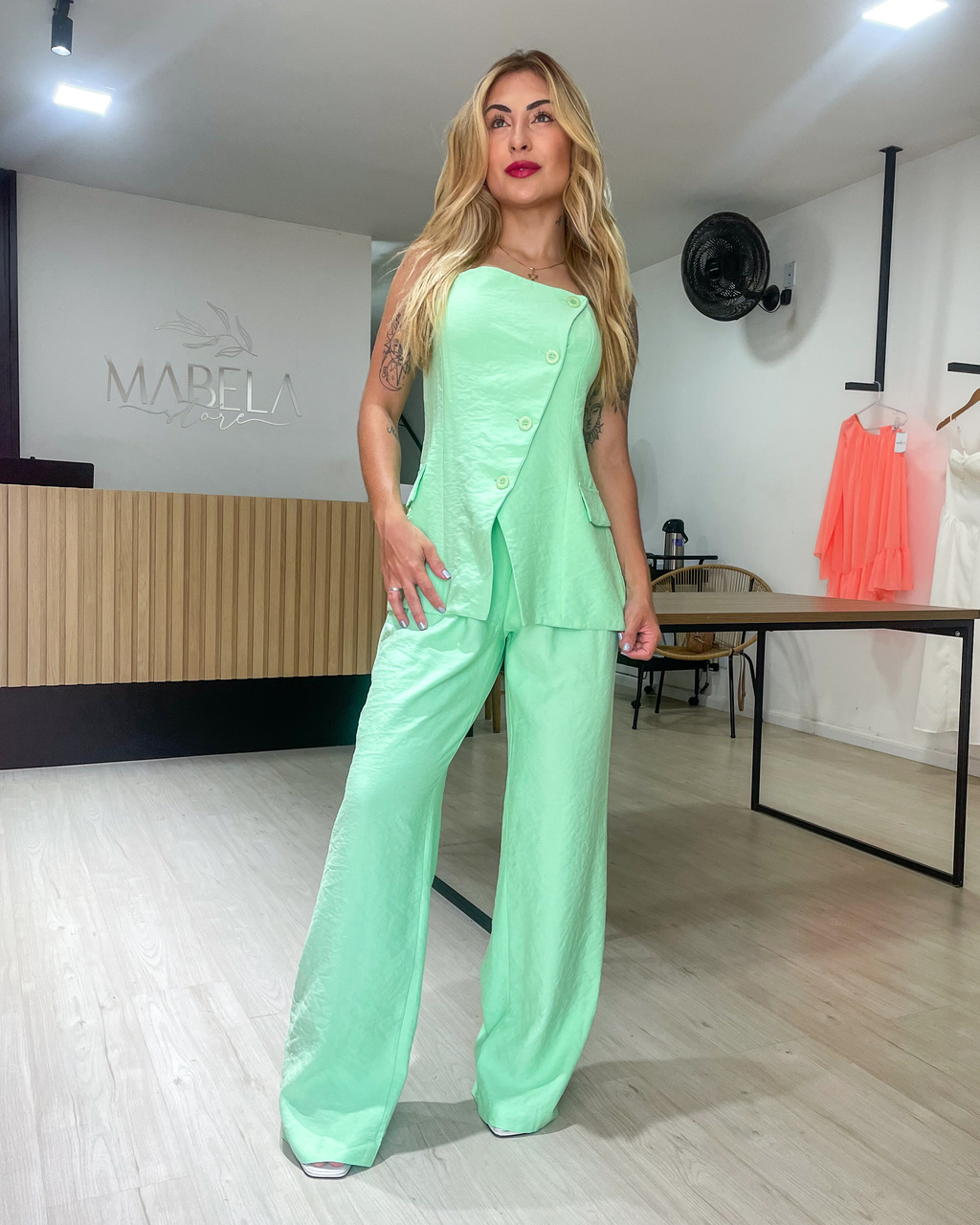 Composto por blusa e calça, este conjunto se destaca pela versatilidade e estilo. Perfeito para diversas ocasiões.