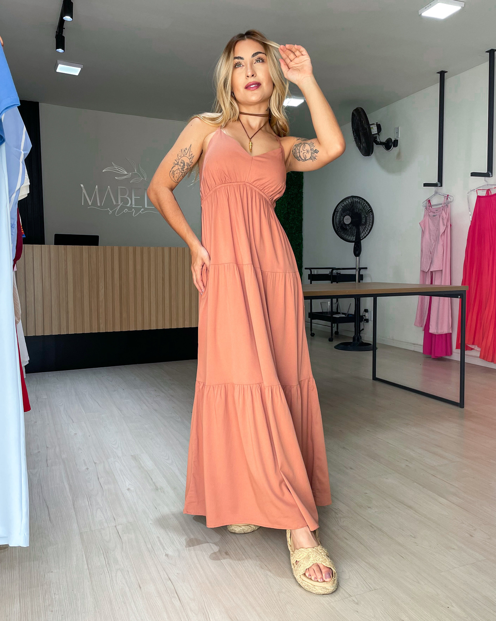 Sem forro, o vestido oferece liberdade de movimento e um toque de leveza. Não possui bojo.