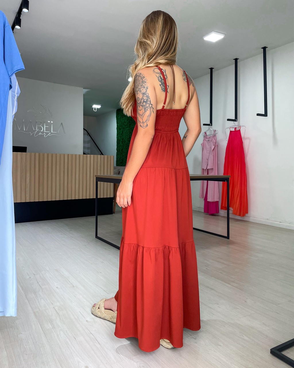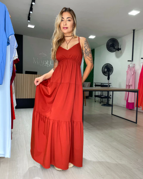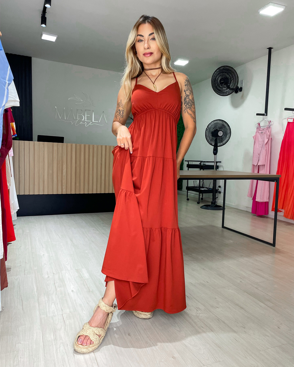 Sem forro, o vestido oferece liberdade de movimento e um toque de leveza. Não possui bojo.